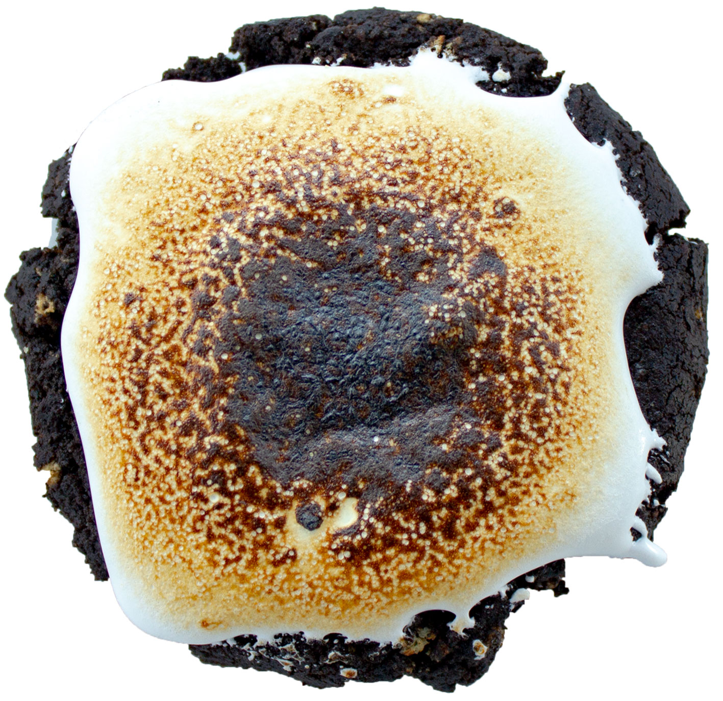 Our double chocolate cookie dough infused with graham crackers and topped with toasted marshmallow fluff! Available only in stores.